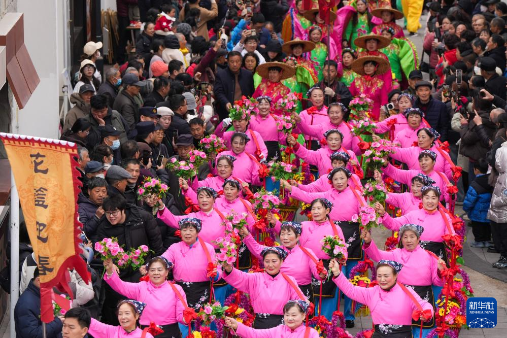2月25日,演员在无锡梅村泰伯庙会进行民俗巡游。