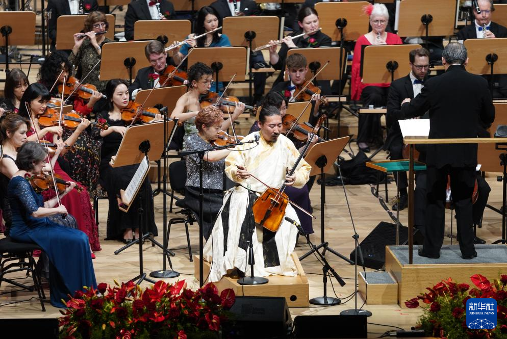 2月25日,音乐家在美国纽约举行的纽约爱乐乐团中国农历新年音乐会上演奏。