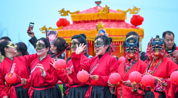 这是3月2日在豫园商城拍摄的民俗文化演出现场。