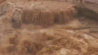 秀我中國|黃河壺口瀑布水量大漲 游人駐足賞景留影