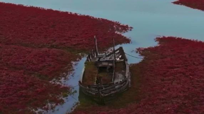 秀我中國丨青島膠州灣:鹽地堿蓬綻放火紅色彩