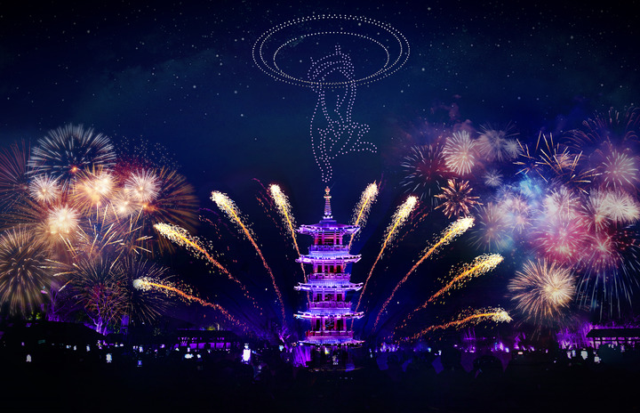 无锡拈花湾景区的光影秀。(受访者供图)