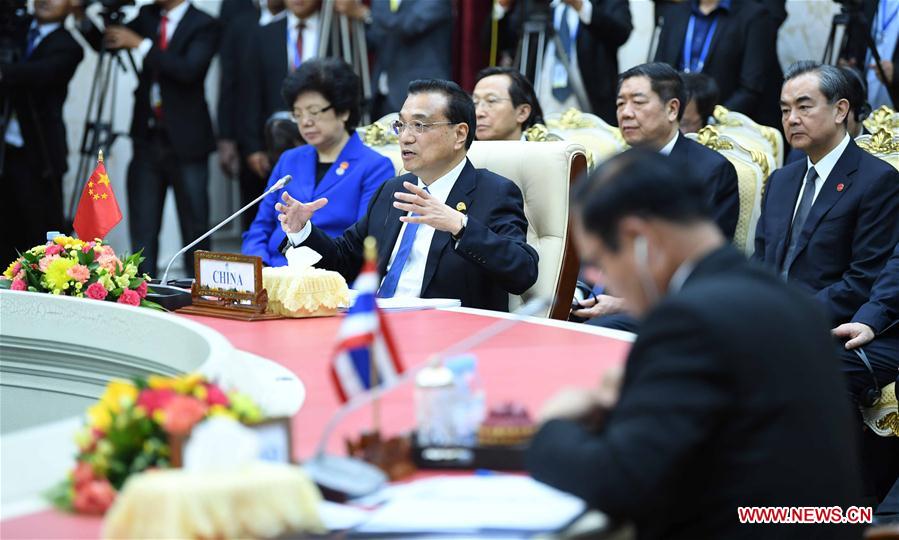 Chinese Premier Li Keqiang attends the second Lancang-Mekong Cooperation (LMC) leaders' meeting in Phnom Penh, Cambodia, Jan. 10, 2018. (Xinhua/Zhang Duo)