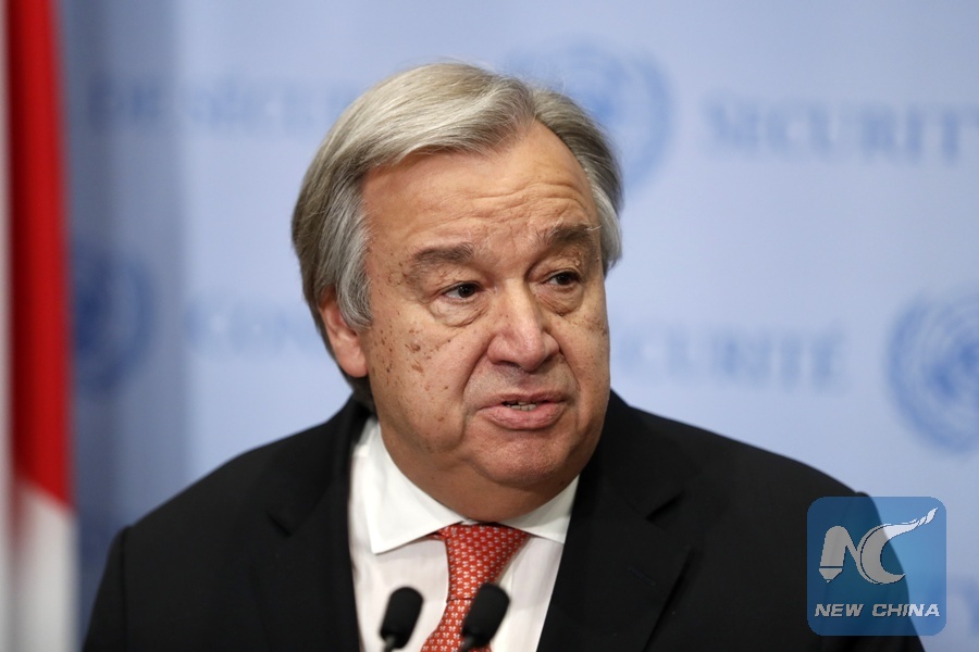 UN Secretary-General Antonio Guterres reads a statement at the UN headquarters in New York, on Dec. 6, 2017. (Xinhua/Li Muzi)