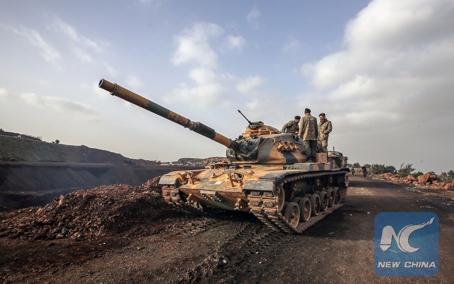 ?A Turkish armored vehicle is seen in Afrin, Syria, on Jan. 22, 2018. (Xinhua Photo)