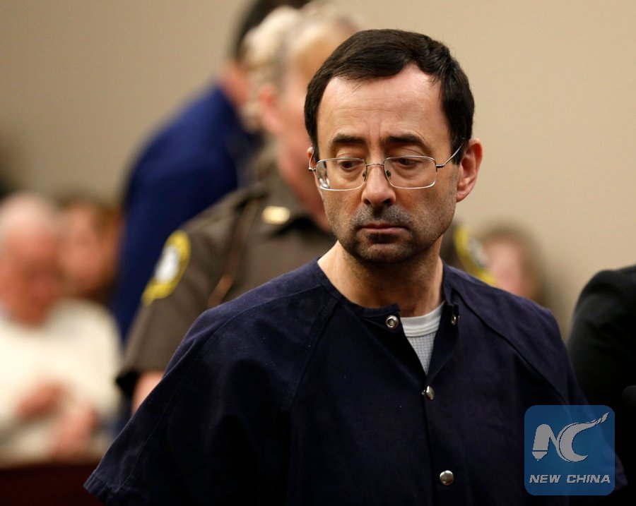 WASHINGTON, Jan. 24 (Xinhua) -- Larry Nassar, former USA Gymnastics team doctor and Michigan State University doctor, was sentenced to 40-175 years in prison for sex-assaults to over one hundred women and girls, including Olympic medalists, in Michigan on Wednesday.