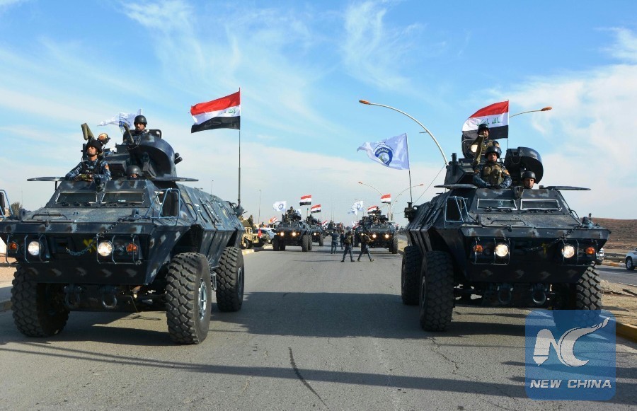 Iraqi armored vehicles take part in a parade in Mosul, Iraq on Dec. 14, 2017. Ninevah Operation Command of the Iraqi military paraded in Mosul to celebrate the full liberation of Iraqi lands of the Islamic State(IS) group. (Xinhua/Khalil Dawood)