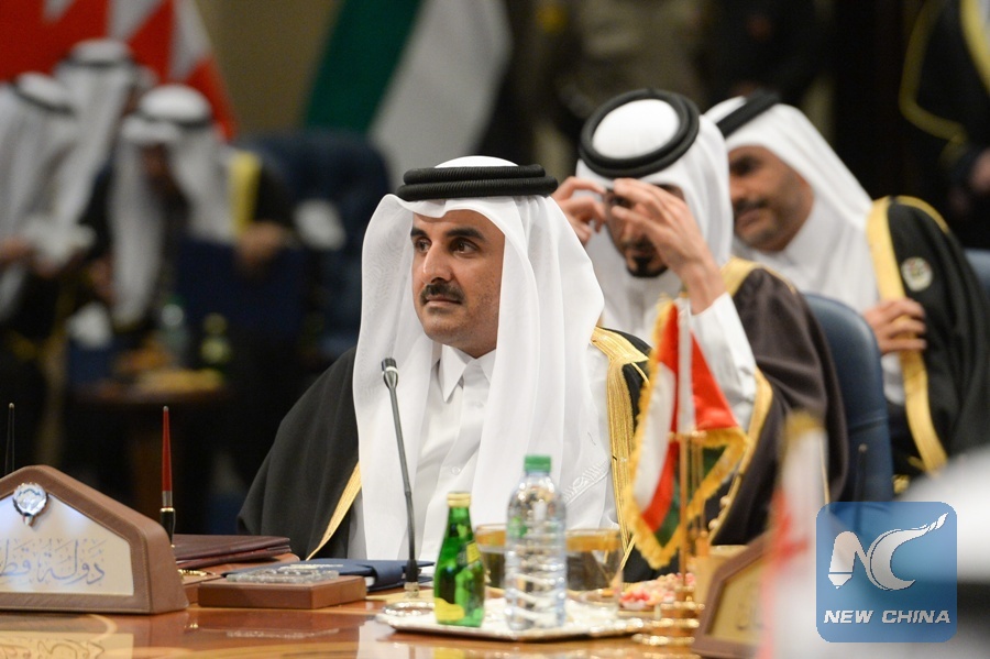 Qatari Emir Sheikh Tamim bin Hamad Al Thani (Front) attends the 38th Gulf Cooperation Council (GCC) Summit in Kuwait City, Kuwait, on Dec. 5, 2017. (Xinhua/Muhammed Ayaan)