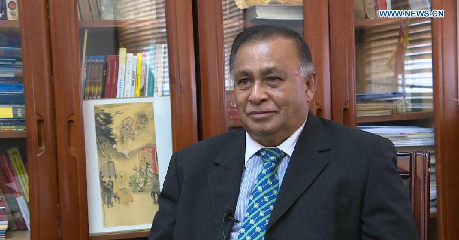Sri Lankan Ambassador to China Dr. Karunasena Kodituwakku receives an exclusive interview from Xinhuanet in Beijing, capital of China, Feb. 27, 2018. (Xinhuanet/Zhang Bin)