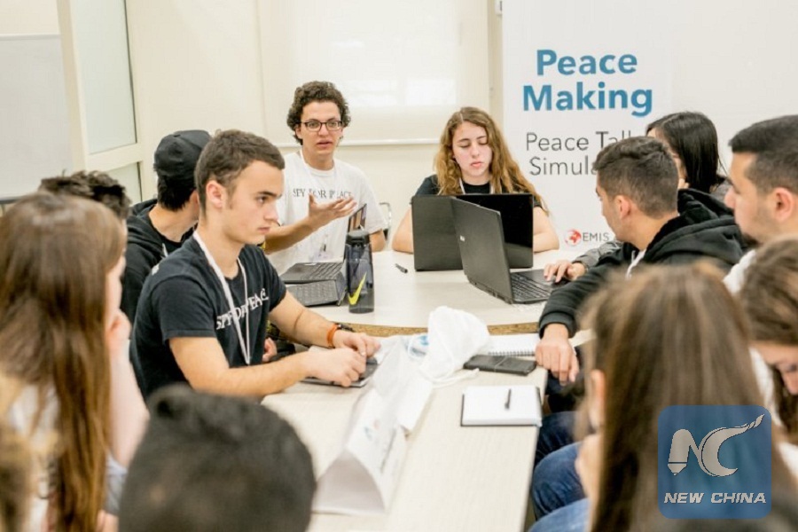JERUSALEM, March 5 (Xinhua) -- On a sunny afternoon in central Israel, tens of Israeli, Palestinian students filled a small library and engaged in a passionate debate in a simulation of peace talks between Israel and Palestine.