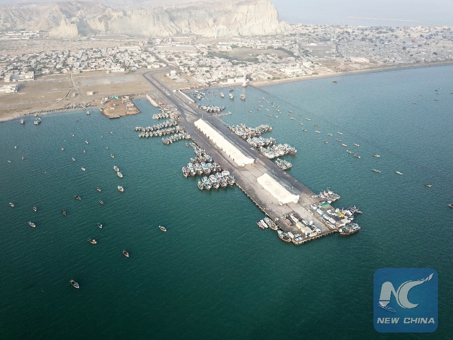 Fishing boats berth in the bay at Gwadar port in southwest Pakistan's Gwadar, Jan. 29, 2018. The first phase of Gwadar Port's Free Zone in southwestern Pakistan was inaugurated. (Xinhua/Ahmad Kamal)
