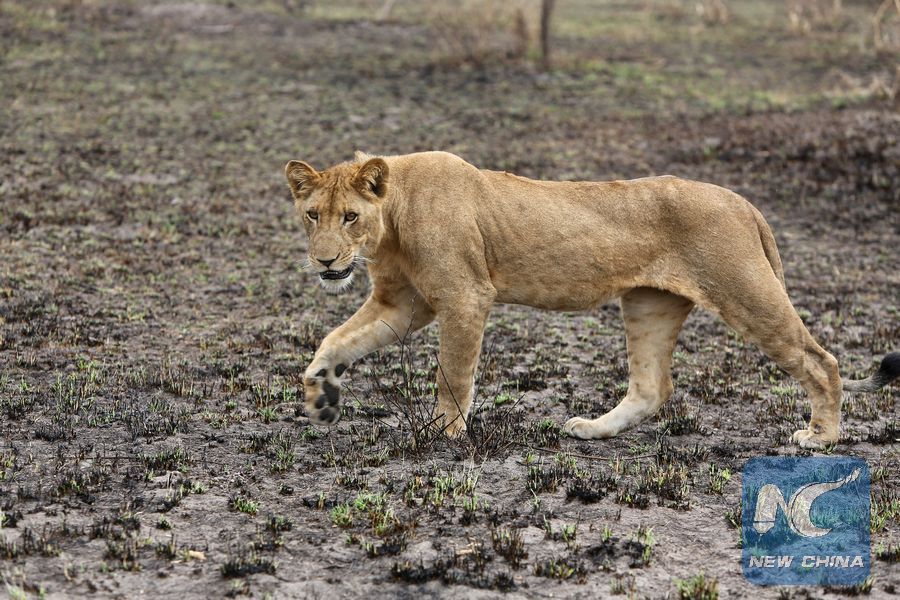 A lion roams at Queen Elizabeth National Park in the western Ugandan district of Kasese, January 31, 2017. (Xinhua/Ronald Ssekandi)