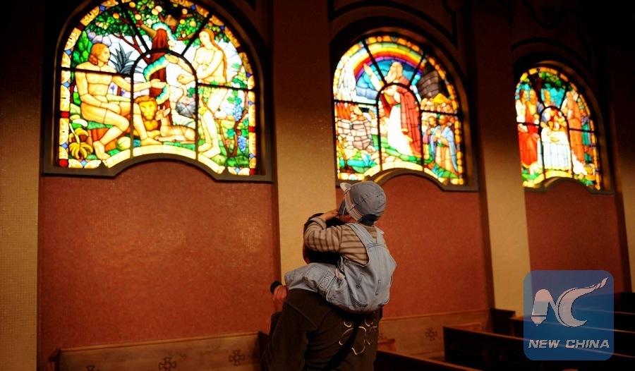A tourist sits inside the Holy Trinity Church in Addis Ababa, capital of Ethiopia, Jan. 27, 2009. (Xinhua/Yu Yang)