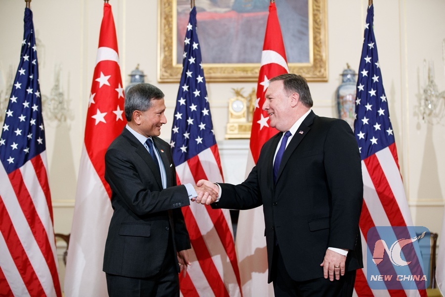 WASHINGTON, June 5 (Xinhua) -- U.S. State Secretary Mike Pompeo on Tuesday met with Singapore's Minister for Foreign Affairs Vivian Balakrishnan to discuss trade relations, and U.S. cooperation with the Association of Southeast Asian Nations (ASEAN), the U.S. State Department said.