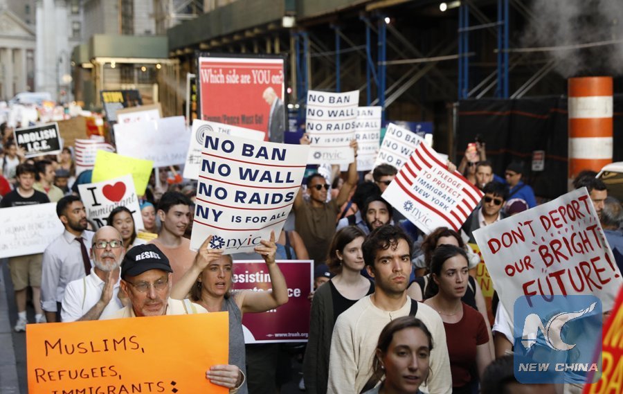 People protest against U.S. President Donald Trump's immigration policies in New York City, the United States, June 26, 2018. (REUTERS Photo)