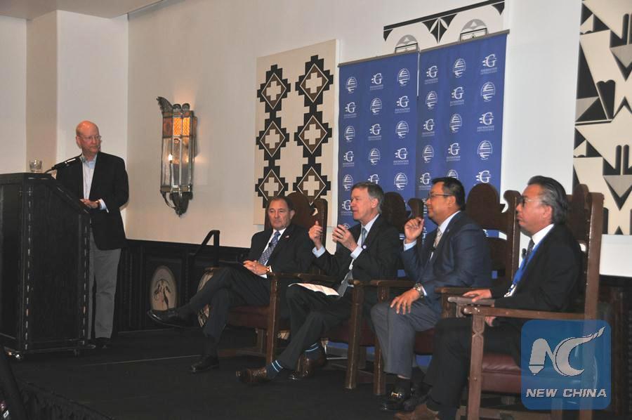 Government officials, diplomats and business representatives gather in Santa Fe, New Mexico, the United States, on July 19, addressing concerns on the recent trade frictions between the United States and China and the importance of promoting trade relations. (Xinhua/Liu Liwei)