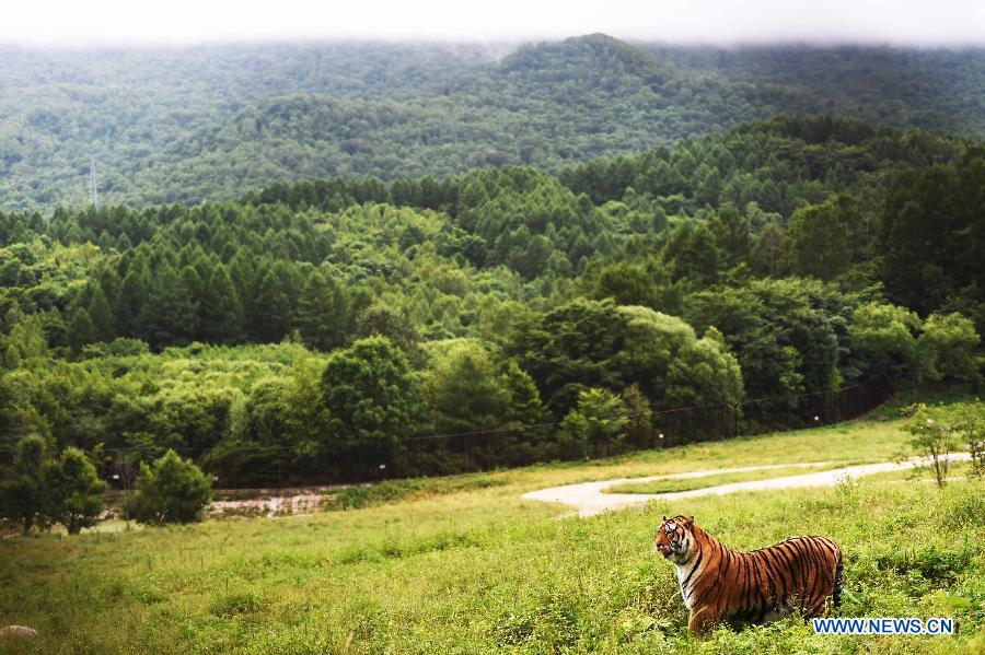A Siberian tiger is seen at the Siberian Tiger Park in Hengdaohezi Township of Hailin City, northeast China's Heilongjiang Province, July 12, 2016. (Xinhua/Wang Jianwei)