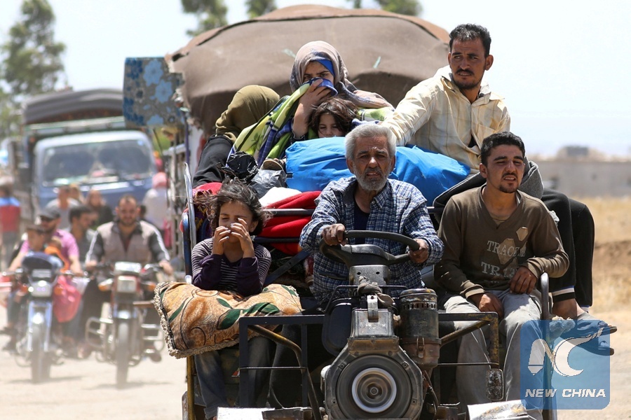 Internally displaced people from Deraa province arrive near the Israeli-occupied Golan Heights in Quneitra, Syria June 29, 2018. (Xinhua/REUTERS)