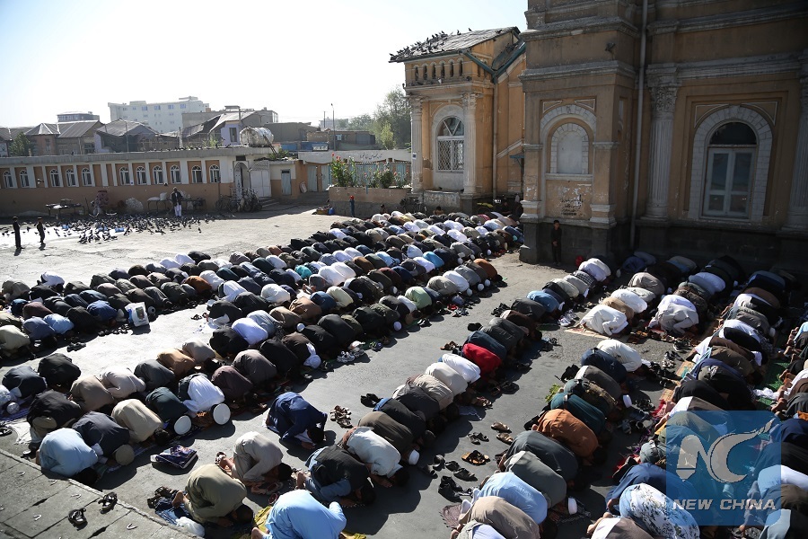 People attend the Eid al-Adha prayers in Kabul, capital of Afghanistan, Aug.21, 2018. (Xinhua/Rahmat Alizadah)