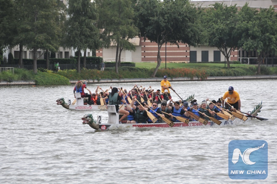 Chinese traditional sports dragon boating event held in Houston