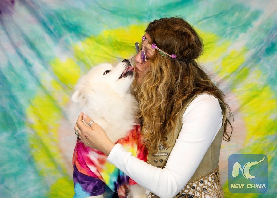 A staff members poses with a dog during a 'Wuffstock' Halloween event, at the Morristown Animal Inn in Morristown, New Jersey, U.S., October 26, 2018. Picture taken October 26, 2018. (Xinhua/REUTERS)