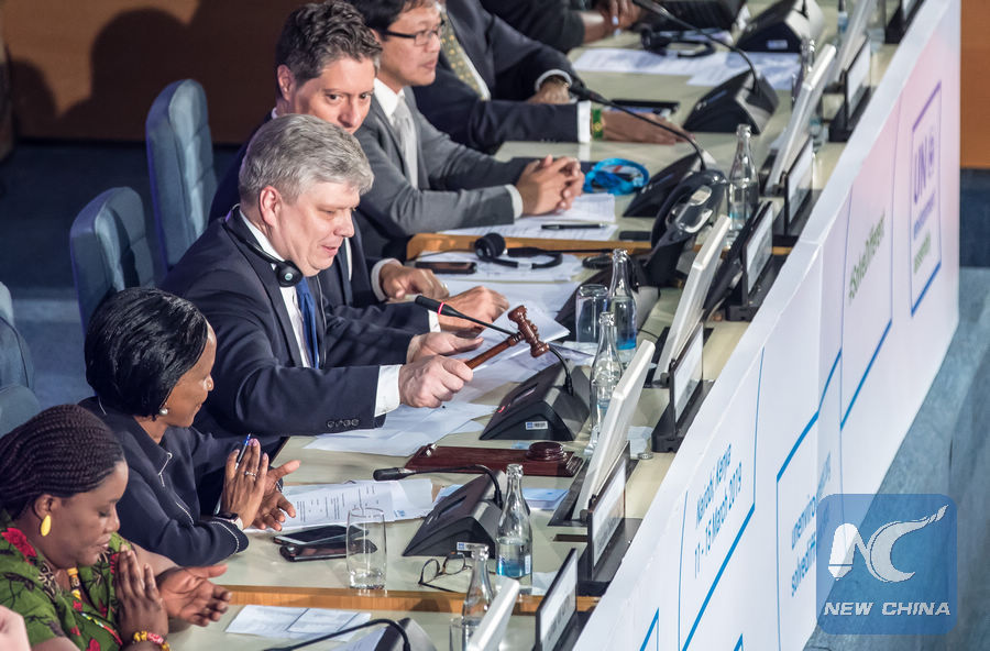 Photo shows the closing ceremony of the fourth session of the UN Environment Assembly (UNEA4) in Nairobi, Kenya, March 15, 2019. (Xinhua/Zhang Yu)