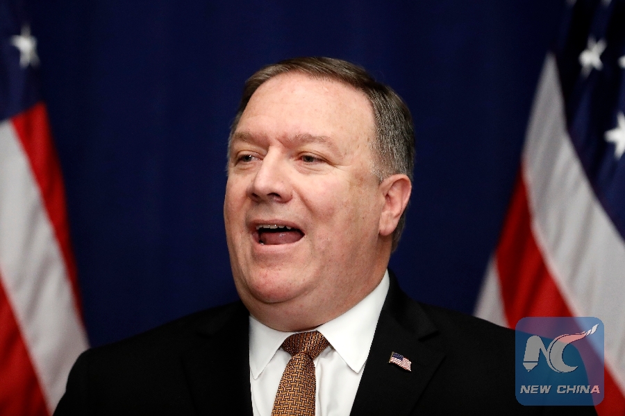 File Photo: U.S. Secretary of State Mike Pompeo speaks at a press briefing in New York, the United States, May 31, 2018. (Xinhua/Li Muzi)