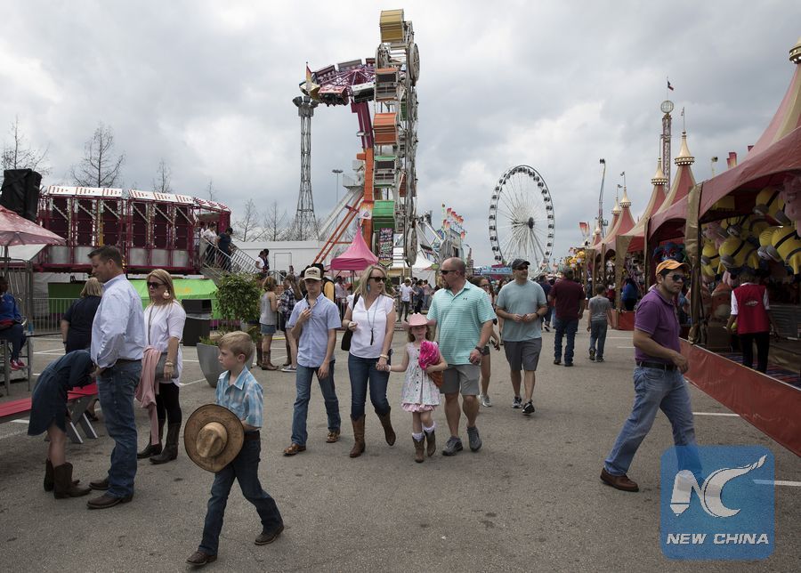 People visit the carnival during the Houston Livestock Show and Rodeo in Houston, Texas, the United States, on March 11, 2019. (Xinhua/Yi-Chin Lee)