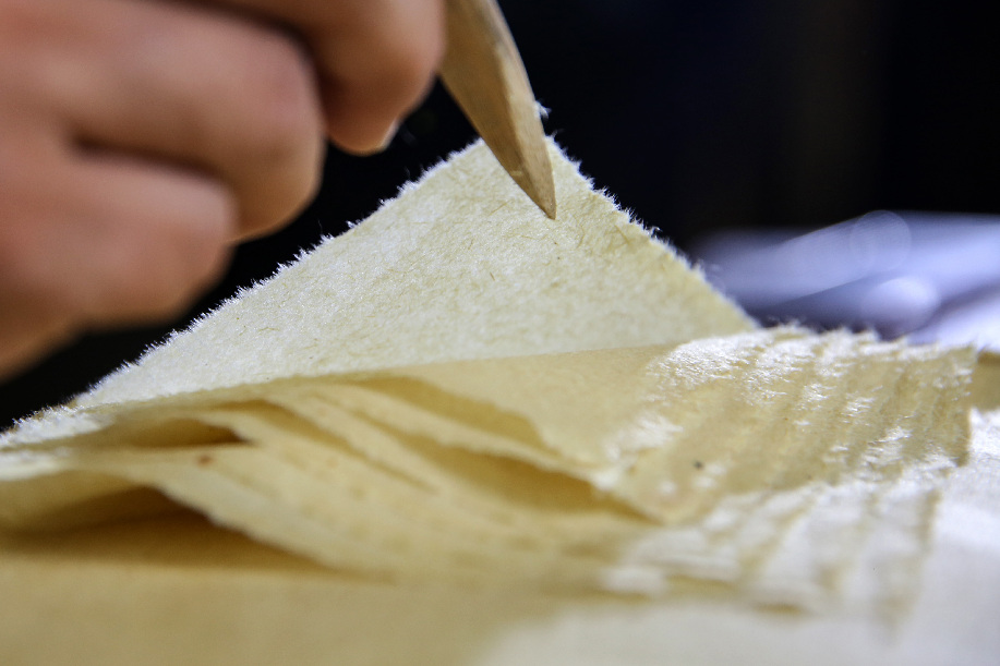 Since 2015, Li Qiugui, 35, has been committed to inheriting the ancient craft of handmade paper from his father Li Zhijun with the papermaking techniques such as bamboo cutting, soaking, crushing, squeezing and drying. Li Qiugui wishes that he and his father could promote their own workshop to a papermaking research institute known nationwide.
