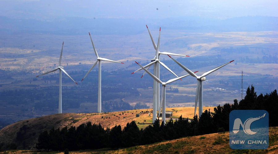 (File photo) Wind turbines were seen at the Kenya Electricity Generating Company station in Ngong hills, about 22 km southwest of Kenya's capital Nairobi. (Xinhua/Zhao Yingquan)
