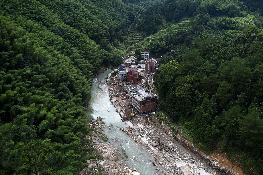 A total of 650 firefighters, soldiers, policemen and government agency staff are searching for nine people who are still missing in Shanzao village in Yongjia County. By Sunday, 23 people in the village have been confirmed dead after torrential downpours caused a landslide, blocked a river and submerged many homes.
