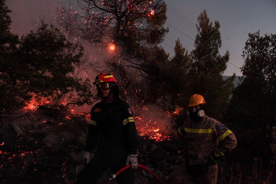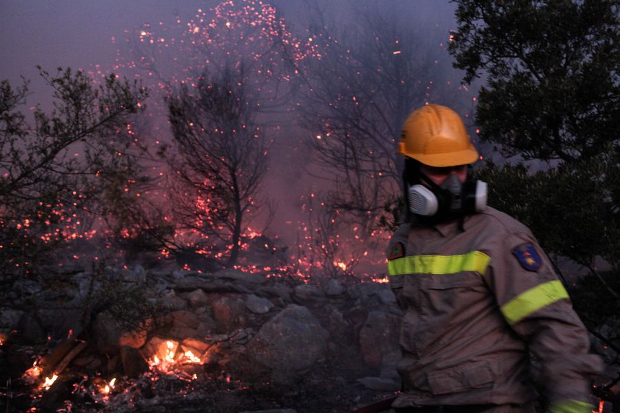 In Evia the flames have already scorched large forested zones, including part of a pine forest included in the EU's Natura 2000 network of protected areas, and reached the villages of Makrymalli and Kontodespoti, according to the Fire Service.