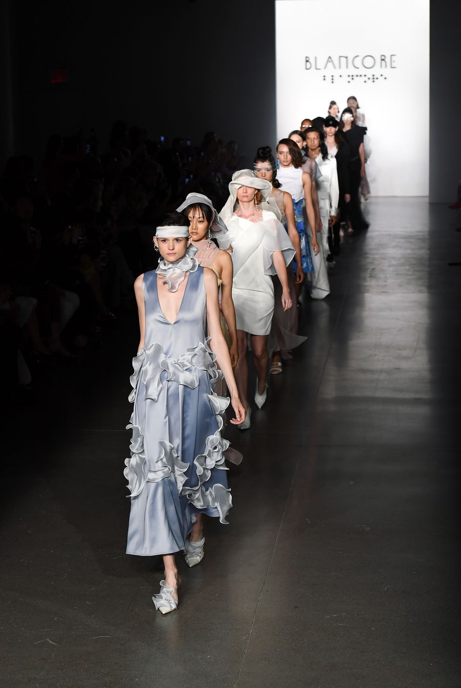 Models present creations from the Blancore Spring/Summer 2020 collection during New York Fashion Week in New York, the United States, on Sept. 5, 2019. Blancore made its first appearance at New York Fashion Week on Thursday. (Xinhua/Li Rui)