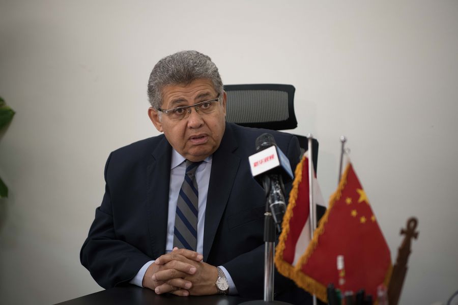 The Egyptian Chinese University president and Egypt's former higher education minister Ashraf el-Shihy speaks during an interview in Cairo, Egypt on Aug. 4, 2019. (Xinhua/Wu Huiwo)