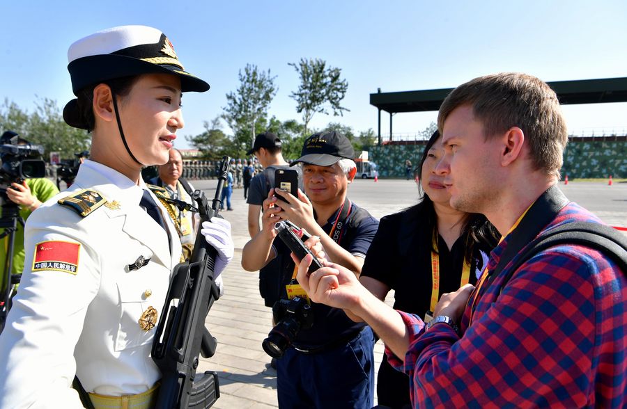 BEIJING, Sept. 26, 2019 (Xinhua) -- A total of 47 journalists from home and abroad on Wednesday visited a training site of the military parade for the upcoming National Day celebrations.