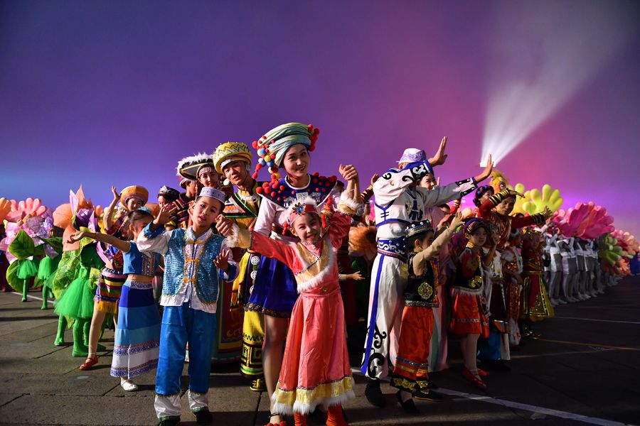 People perform during a grand evening gala at Tian'anmen Square to celebrate the 70th anniversary of the founding of the People's Republic of China (PRC), in Beijing, capital of China, Oct. 1, 2019. (Xinhua/Liu Bin)
