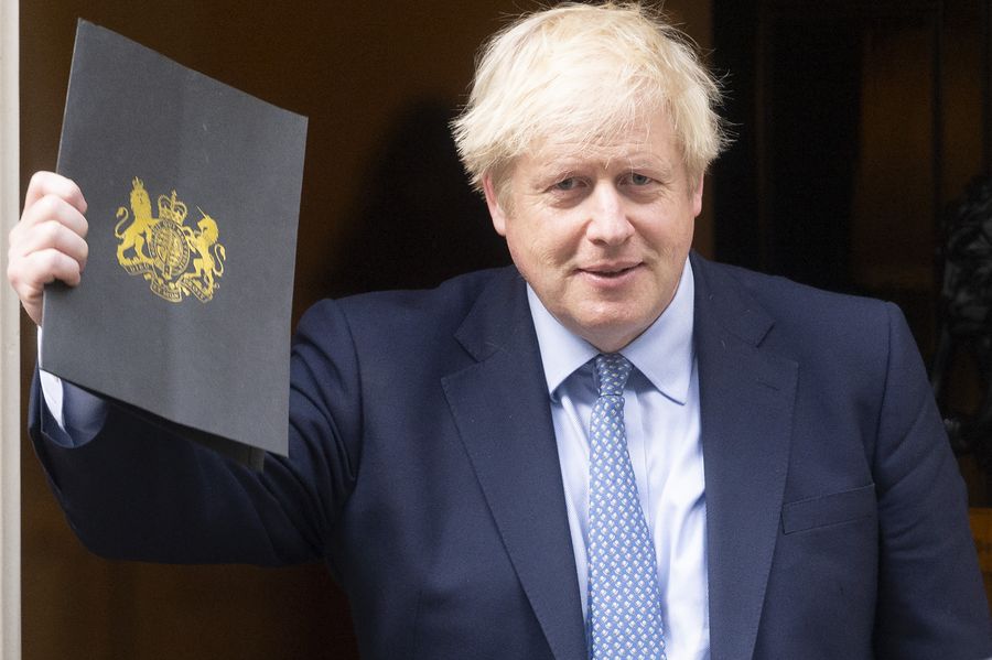 British Prime Minister Boris Johnson leaves 10 Downing Street to attend the reopening of the Parliament in London, Britain, Sept. 25, 2019.(Photo by Ray Tang/Xinhua)