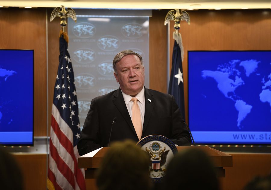 U.S. Secretary of State Mike Pompeo speaks during a press briefing in Washington D.C., the United States, April 22, 2019. (Xinhua/Liu Jie)