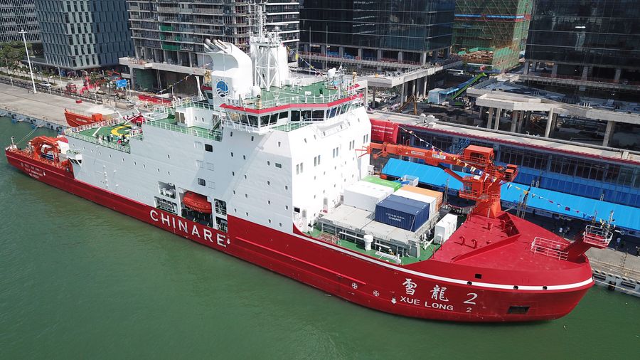 China's polar icebreaker Xuelong 2, departs from the Shekou cruise home port in Shenzhen, south China's Guangdong Province, Oct. 15, 2019. (Xinhua/Mao Siqian)