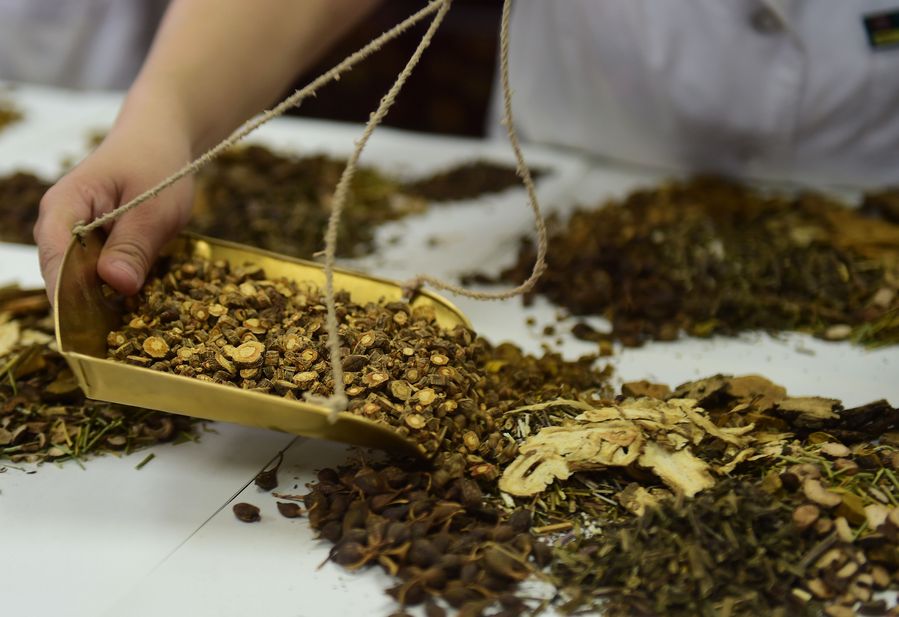 A staff member of Cangzhou People's Hospital fills prescriptions of Traditional Chinese Medicine for patients in Cangzhou, north China's Hebei Province, May 26, 2019. (Xinhua/Fu Xinchun)