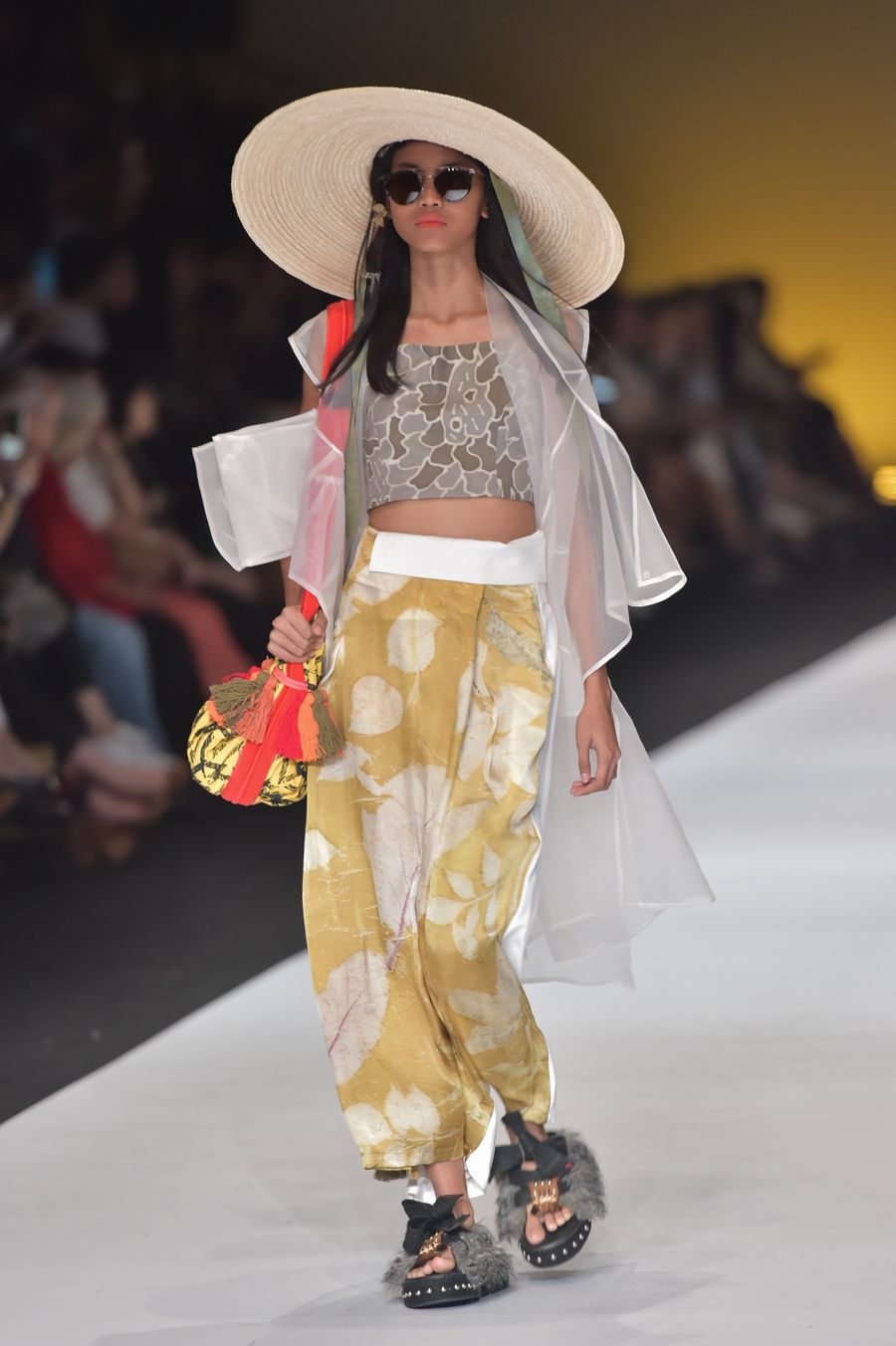 A model presents creations of Humbang Kriya and Purana during Jakarta Fashion Week 2020, in Jakarta, Indonesia, Oct. 24, 2019. (Xinhua/Veri Sanovri)■