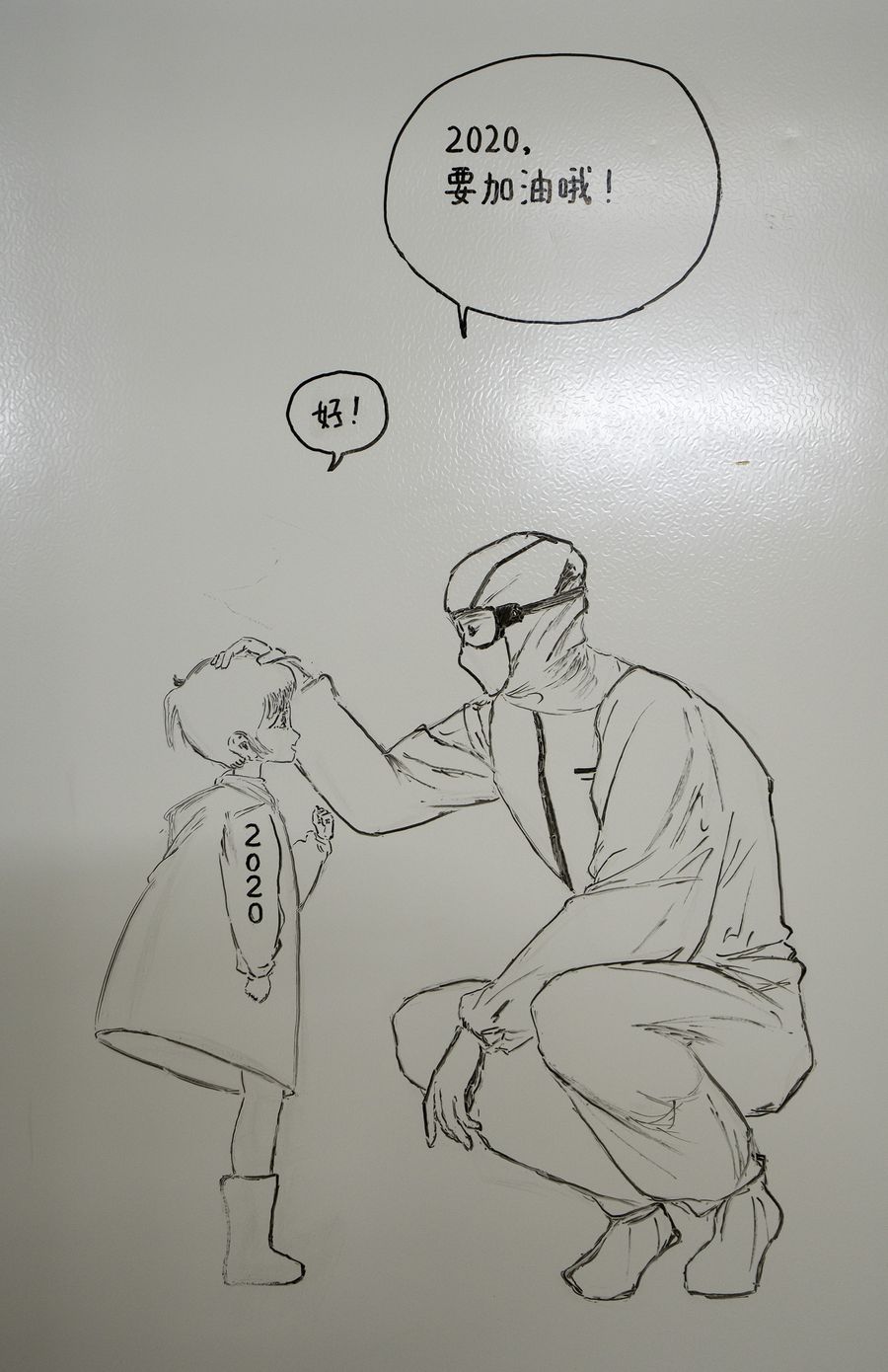 "I started to draw a cartoon on the corridor wall of ward A2 in Leishenshan. That helped me relieve pressure after a day's work," said the nurse. "More and more colleagues and patients come to see those pictures. I never expect them to become so popular."