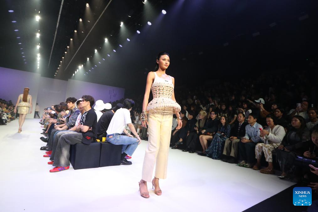 A model presents creations during the Bangkok International Fashion Week in Bangkok, Thailand, on Oct. 16, 2025. Running from Oct. 16 to 19, the Bangkok International Fashion Week is an important platform for Thai designers to showcase their designs and creativity. (Xinhua/Rachen Sageamsak)