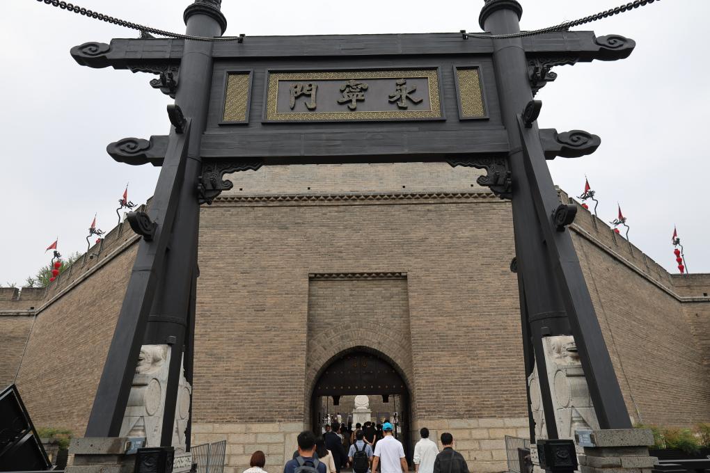 This photo taken on Sept. 10, 2025 shows the entrance of Yongning Gate of the Xi'an City Wall in Xi'an, northwest China's Shaanxi Province. (Xinhua/Zhu Weixi)