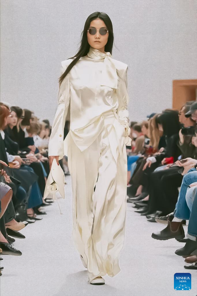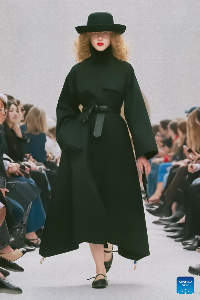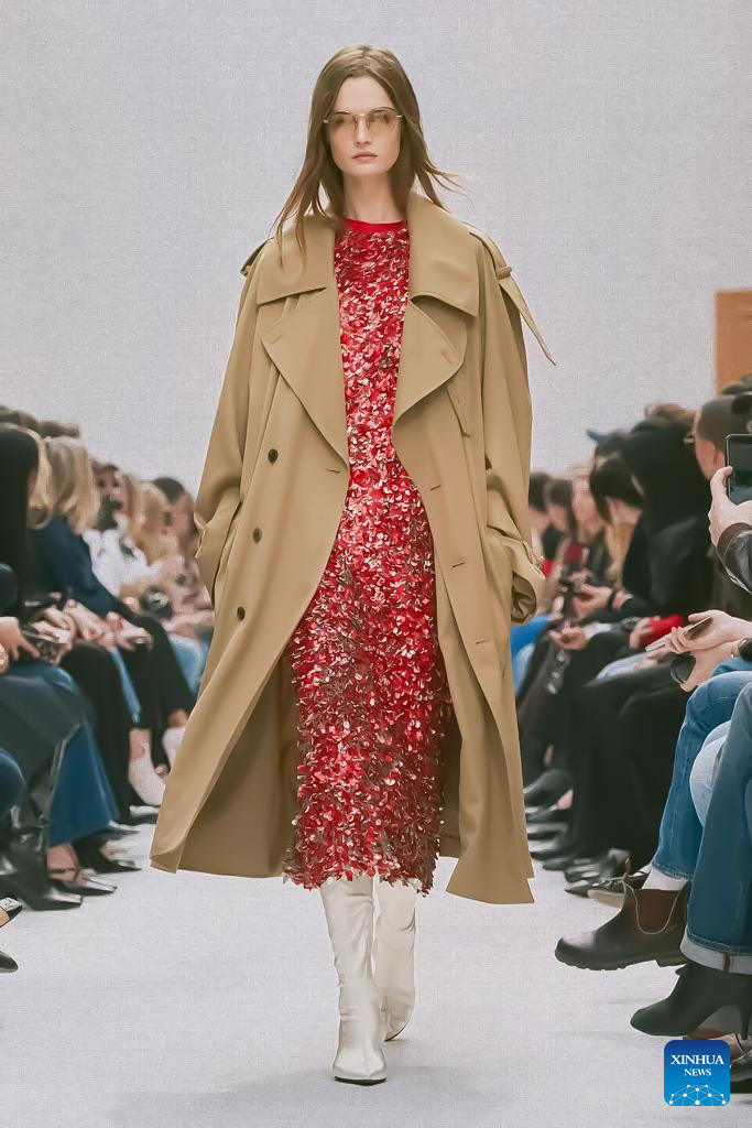 A model presents a creation from the ready-to-wear Fall/Winter 2026-2027 collections by Celine during the Paris Fashion Week in Paris, France, March 7, 2026. (MeetEurope/Handout via Xinhua)