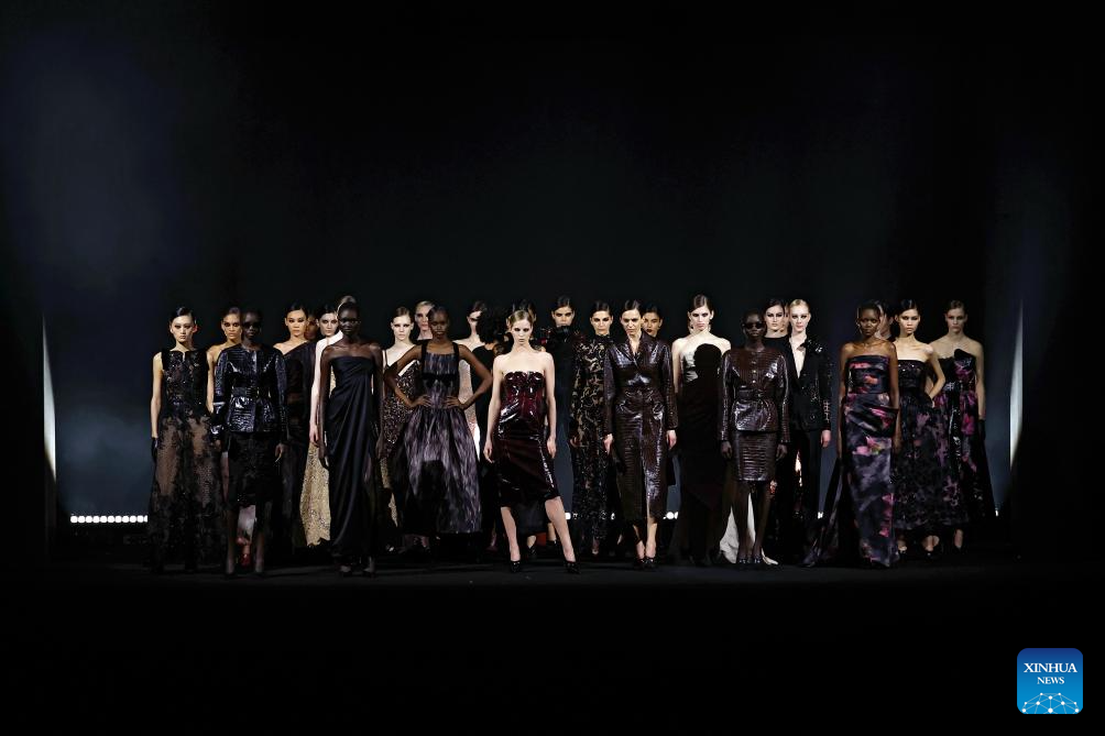 Models present creations from the ready-to-wear Fall/Winter 2026-2027 collections by Elie Saab during the Paris Fashion Week in Paris, France, March 7, 2026. (MeetEurope/Handout via Xinhua)