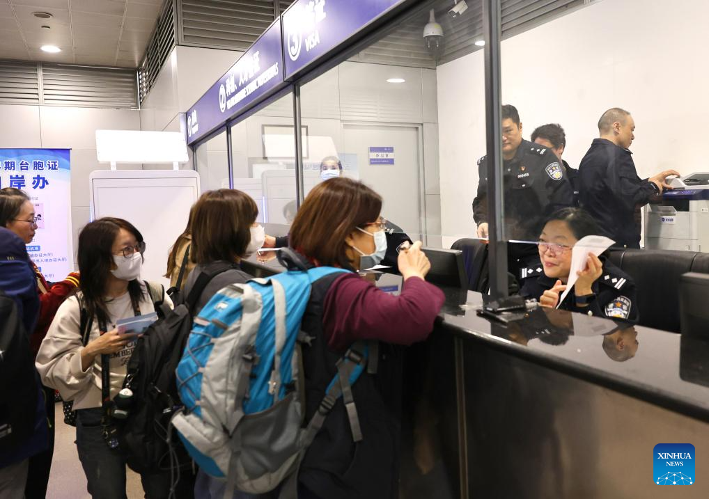 Taiwan compatriots who were stranded in the Middle East go through transit procedures at Shanghai Pudong International Airport in Shanghai, east China, March 10, 2026. (Xinhua/Fang Zhe)