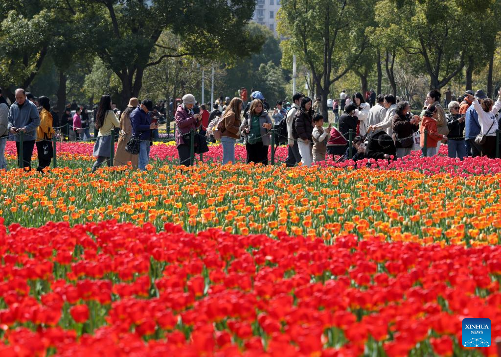 People view flowers at Daning park in east China's Shanghai, March 14, 2026. (Xinhua/Liu Ying)