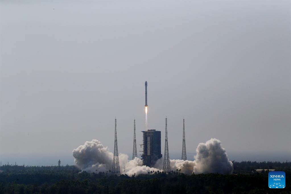 The rocket blasted off at 11:06 a.m. (Beijing Time) at the Wenchang Spacecraft Launch Site in the southern Hainan Province before sending the satellites into preset orbits.