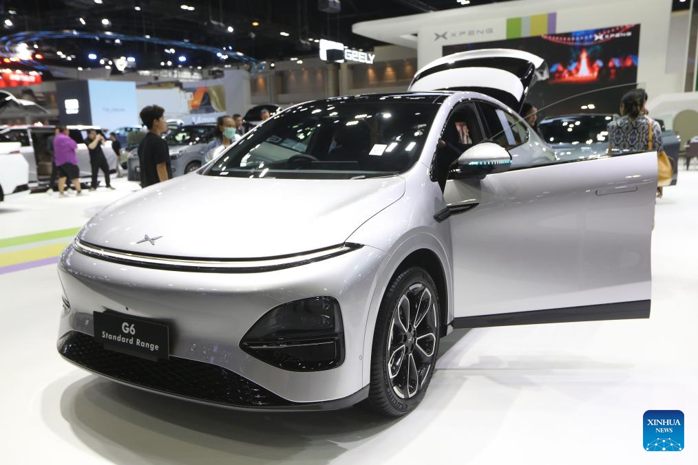 This photo taken on Dec. 2, 2025 shows an electric car from Chinese carmaker Xpeng at the 42nd Thailand International Motor Expo in Bangkok, Thailand. (Xinhua/Rachen Sageamsak)